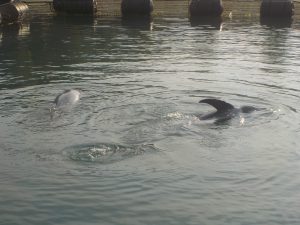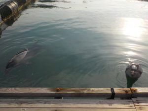 私たちスタッフは朝出勤したらまずイルカ達の様子をチェックしに生簀へ行きます。