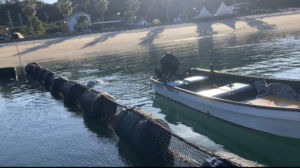 船の左上で顔を上げているももちゃんが…