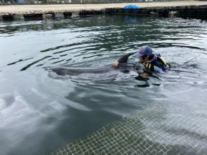 頑張っていることは…胸鰭を持って泳ぐことを練習しています。