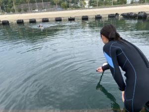 まだまだつばきちゃんの担当トレーナーさんと練習をしていますが、上手になってきたらスタッフもゲストになりきって一緒に泳ぎます!つばきちゃんと一緒に泳げる日が待ち遠しいです💕